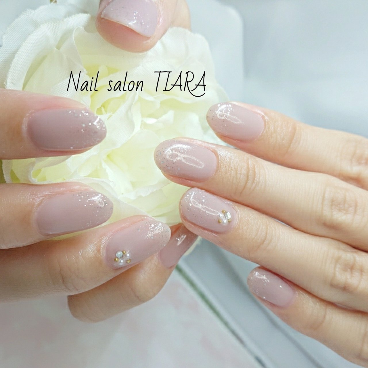 新年度は清楚に ピンクベージュの指先キラリネイル Michill ミチル